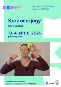 Kurz povede Mgr. Ing. Lucie Prošková – certifikovaná lektorka oční jógy a celostních metod přirozeného zlepšování kondice zraku. Farmaceutka a lektorka jógy smíchu.